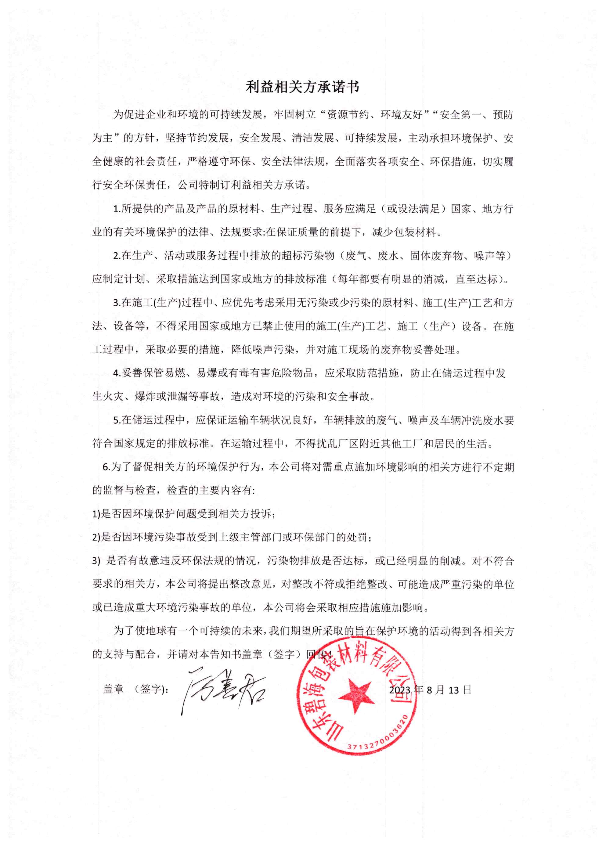 一、利益相关方承诺01利益相关方承诺利益相关方承诺