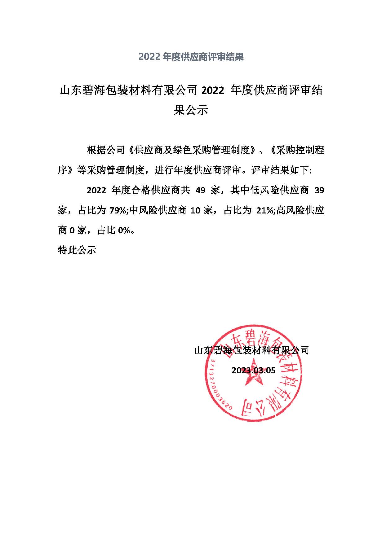 三、供应商风险等级评估结果